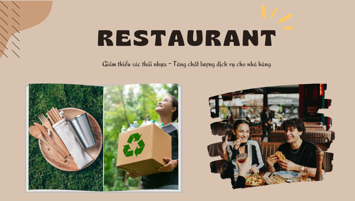 Một trong những giải pháp đơn giản nhất là thay thế các sản phẩm nhựa dùng một lần bằng các vật liệu thân thiện với môi trường. Các nhà hàng có thể sử dụng ống hút bằng giấy, cốc, đĩa và dao dĩa làm từ bã mía, tre hoặc gỗ. Những vật liệu này không chỉ phân hủy nhanh chóng mà còn mang lại cảm giác sang trọng và tinh tế hơn cho bữa ăn của khách hàng.