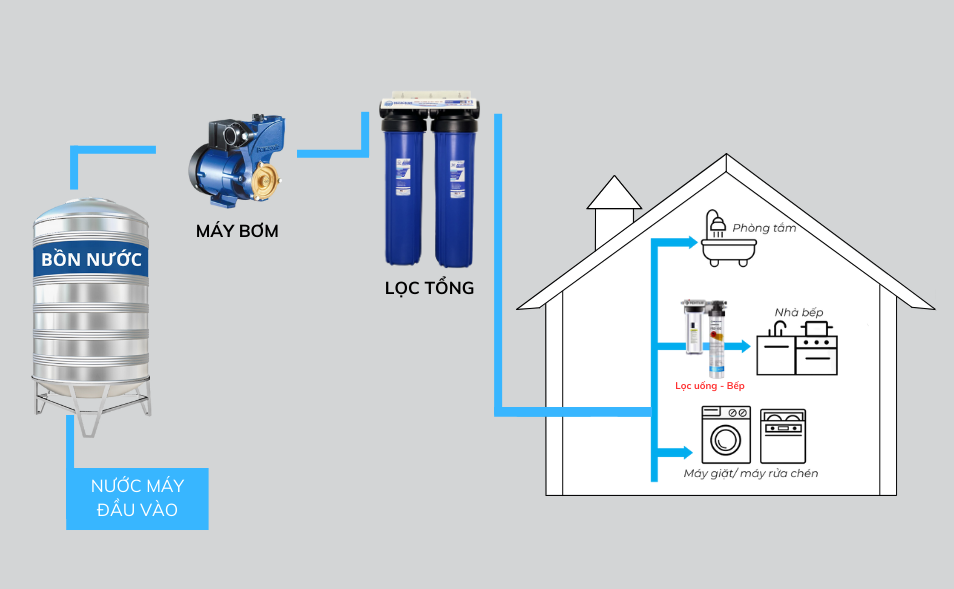 – Đồng hồ đo áp lực nước cấp và quan sát tình trạng áp lực qua lõi lọc, xem xét có nên thay lõi lọc.