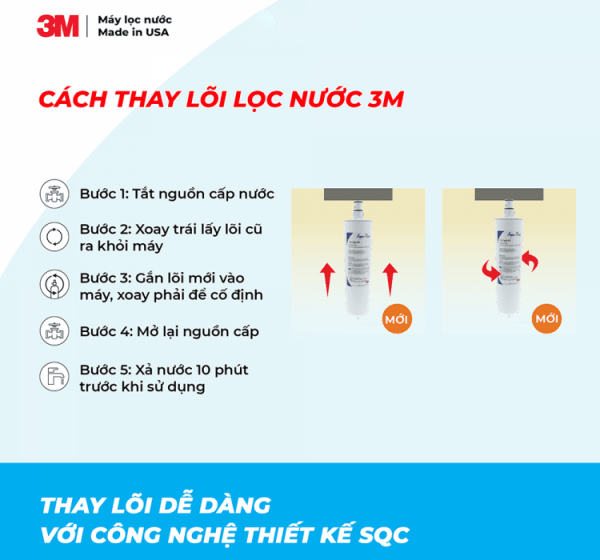 – Lõi lọc thiết kế SQC, thay lõi chỉ 2-5 phút